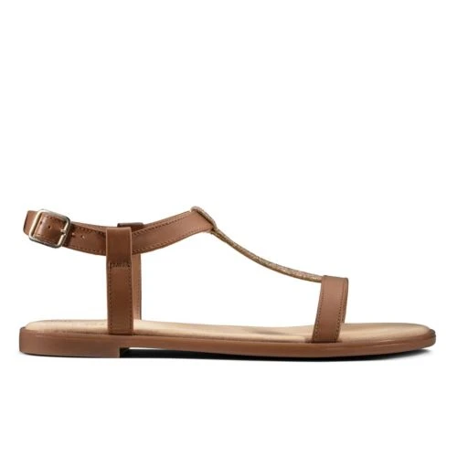 Perfect for taking on holiday, these flat T-bar sandals offer a minimalist look thanks to the strappy upper and simple buckle fastening. Featuring an ankle strap for a secure fit, a grippy rubber sole and soft textile footbed