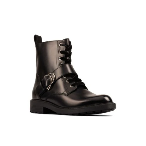 Updating our bestselling Orinoco profile, we’ve added a chunky buckle and strap to create a must-have lace-up ankle boot that stays all day wearable. The black leather upper feels crafted and contemporary while the durable cleated sole with 3cm heel adds grip. Our Cushion Plus technology ensures unbeatable comfort underfoot. Perfect to see you through the season with casual style.