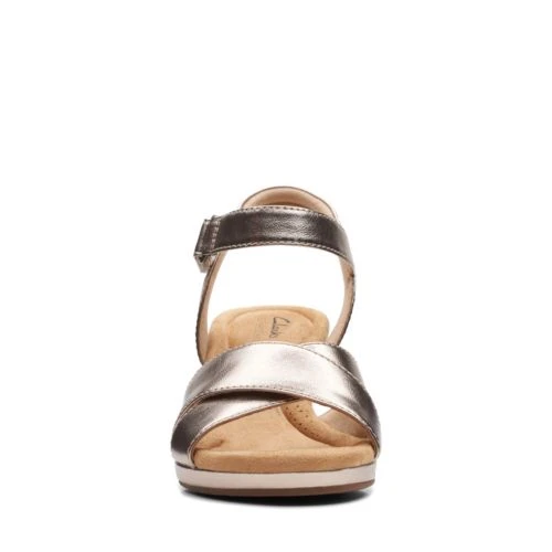 Elevate your evening look with curvy wedge sandal Tulip Gem. Every step is super-stable thanks to an adjustable strap and rubber sole, and soft, chic metallic silver leather wraps feet in comfort.